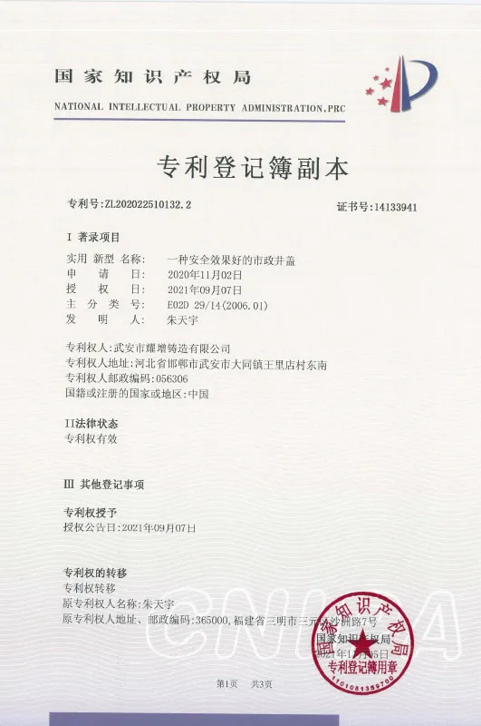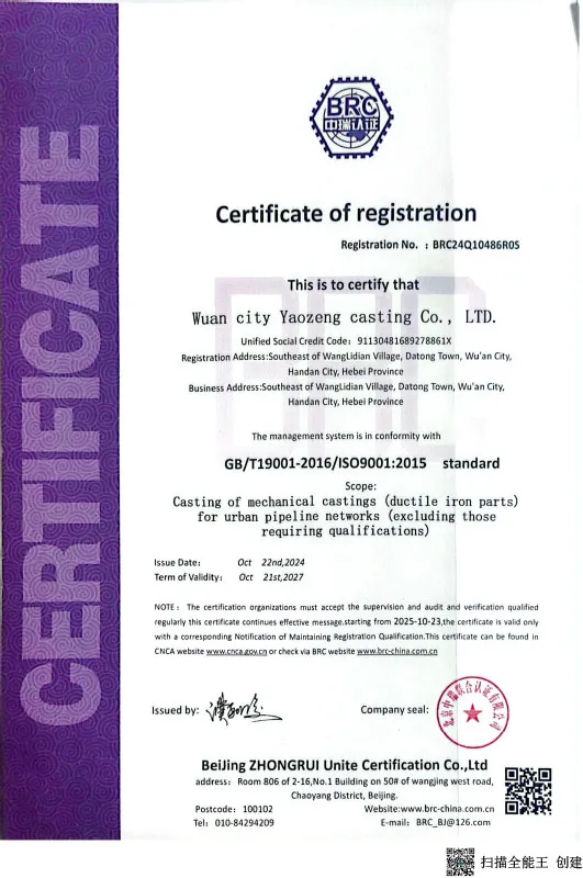 ООО Уань Яоцзэн Литейная Компания основано в 2009 году, расположено в месте происхождения чугуна с шаровидным графитом -- промышленный парк Ванлидянь, г. Уань, пров. Хэбэй, является научно-техническим предприятием, объединяющим проектирование, исследования и разработки, производство и обслуживание таких продуктов, как крышки люков, решётки, фитинги из чугуна с шаровидным графитом. Компания занимает площадь 32 му, в штате 260 сотрудников, среди которых 12 технических специалистов с образованием выше среднего специального. Компания годовая производственная мощность достигает 1,2 тысяч тонн, годовой объем производства 2200 миллионов юаней. Наша компания является сертифицированным высокотехнологичным предприятием, экологически чистым научно-техническим предприятием, предприятием с специализацией, точностью, особенностями и новизной, предприятие прошло сертификацию системы менеджмента качества ISO9000.